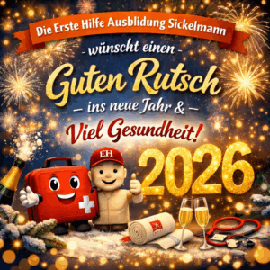 Die Erste Hilfe Ausbildung Sickelmann wünscht allen einen guten Rutsch ins neue Jahr 2026.